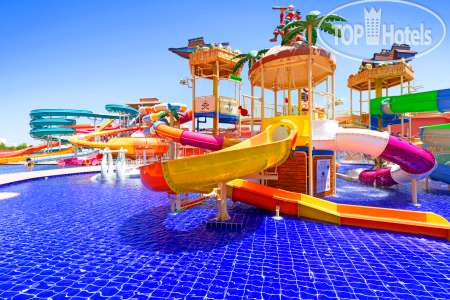 Территория отеля, большая, зеленая и очень красивая. Работа ландшафтного дизайнера очень высокого качества, художественное оформление территории отеля поддерживается ежедневной заботой и вниманием! На территории отеля есть большой аквапарк состоящий из каскада городок для маленьких детей и горок для подростков и взрослых. На территории очень много бассейнов, просто не счесть их количество, для больших и маленьких, шумных и веселых с музыкой и анимацией и расположенных в тихом месте доя релакса. Чистота и уборка бассейнов безупречна! Два больших, удобных бара у бассейнов с напиткам , мороженым и перекусами.