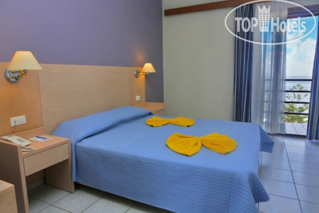 The photos of the rooms are VERY DIFFERENT from those on the website. Everything is old, with yellow toilet lids, and the water in the bathroom drains poorly. I won't even mention the shower curtain – it's disgusting. The food is okay, average, I would say, you won't starve, essentially. But the worst part is that they provide water in the room only on the first day. After that, you either buy it or fill it up in the restaurant (awful water with a chlorine smell from the tap). When you go to the restaurant to get water, the administrator will chase you away saying, 'Who's going to clean up this mess after you?' What????!!!! Did we pay 5000 pounds for this??? Have you lost your mind? And the 'wonderful' bartender Eva (or Eka, I don't remember exactly) at the bar told a child standing in line that there was no apple juice. But when I approached to complain, she shoved a glass of juice into my hands, saying, 'Mommy, did you see how many people I have here?!' This is disgusting! Towels are changed every 3 days. There are notifications everywhere that if you lose/break something, there will be a fine. This is the worst service I have ever experienced. I do not recommend it to anyone! And I will write about this everywhere. You have made me very angry. Shame on you! You have disgraced the excellent service of Greece. Your service is outright garbage!