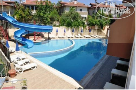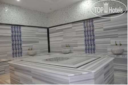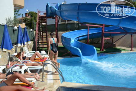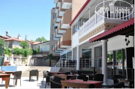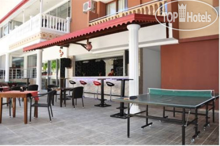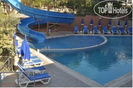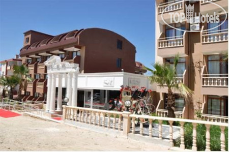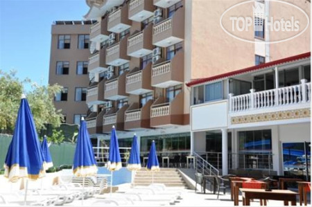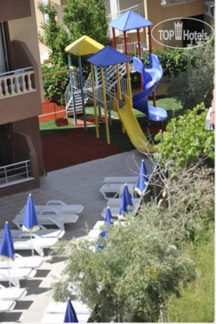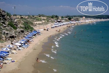 Дорога на пляж минут 7-8 минут через соседний апарт-отель и через дорогу (есть магазины справа и слева, пиво 2.5 евро, мороженое 1 евро, есть аптека 24 часа). Спуск/подъем не такой ужасный, как пишут в комментариях, мы особо не замечали его, возможно, сказался октябрь и не было сильной жары. На пляже лежаков всегда хватало, зонтики и шезлонги очень старые, в ветреную погоду наш отель единственный не открывает зонты. Вход в море пологий, песок. На пляже масса водных развлечений. Есть платный бар, пиво 0,3 - 5 евро, фреш 4 евро, мороженое 3 евро, кофе 4 евро. Есть переодевалка, туалет, душ. Веселый горластый мужчина с душой продает кукурузу (Цвай Эуро штука :) ). От бара есть платные нормальные шезлонги с зонтом 200 лир.