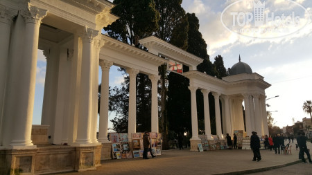 Находится примерно в центре Гагры - между старой и новой. Удобно ездить в любую сторону.