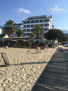 Выбрала данный отель, т.к. он только для взрослых и небольшой, первая линия на супер песчаном пляже "Клеопатры", имеющий награду голубого флага. Отель неидеален, и ждать от трех звезд пятерку не стоит. Здесь главное, что для Вас в приоритете. Хочу выразить людям спасибо, потому что отзывы здесь оказались реальными. Так вот: персонал очень вежлив, лоялен, но из всех только один человек говорил на русском. Интернет есть, но он небыстрый. Отель небольшой и очень спокойный, в нем тихо и гармонично. В отеле в основном иностранцы - культурно. Только вот вечером рядом кафе и часов до 12 ночи сильно играет живая музыка - для меня это был плюс и минус. Можно было насладиться видами вечером, сидя на балконе, слушая красивую музыку, но вот если спать ... то только с берушами. Номер и проживание на "3": заедал смыв унитаза, и краны были в коррозии. Один вечер не было воды и дали только часам к 10 утра. Иногда горячей воды не было. К концу моего проживания стал часто заедать лифт, я на пятом этаже и иногда приходилось ходить пешком. Но первая линия отеля, невероятный вид из окна на город и море... просто фееричный - это перекрывало все "нюансы" номера. Насчет питания: голодной я не была, но в основном еда была жирная и не всегда вкусная и часто повторяющаяся, как-то закончился хлеб и мне нашли какие-то горбушки из остатков. Насчет пляжа: пляж общественный, лежаки и зонтики отдельно платные. Но что я заметила, что в этой части пляжа все равно территория отелей - людей там было немного, а вот первая часть пляжа (с другой стороны, если на море смотреть, то справа) там людей просто нереально много было и видно (я ходила посмотреть), что много местных. Поэтому переживать о том, что пляж общественный не стоит, т.к. всё равно там есть разграничения. Пляж шикарный "Клеопатра", но было и "НО" : на корабликах возят к нему экскурсии и останавливаются напротив пляжа в море, чтобы туристы поплавали. Вот как-то море штормило два дня и к вечеру столько мусора к берегу нанесло, и море в каких-то даже масляных пятных было, я зашла и сразу вышла, хотя люди купались. Но в следующие дни кораблики стали останавливаться вначале пляжа, видимо, отругали ))) Что я могу сказать, если хотите ретрит и побывать на популярном пляже Клеопатры за минимум средств, то оно того стоит, если для Вас важен максимальный отельный комфорт или анимация и развлечения, то это не тот вариант. Вернусь ли я именно туда, возможно, когда-нибудь да. Но мне хочется попробовать что-то новое.