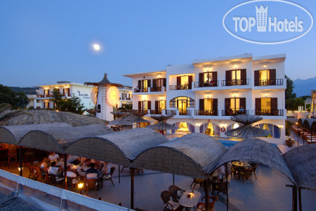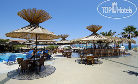 Отель работает на завтраках и ужинах. Питание, конечно, могло быть и поразнообразнее, но в целом все было вкусно и сытно. Шведский стол. столики как внутри, так и снаружи на террасе. Обедать мы ходили в таверну, их на набережной Каливеса несколько штук, мы, как правило. ходили в ближайшую (100 м от отеля), она оказалась самой дешевой и самой вкусной))) В отеле есть бар у бассейна.