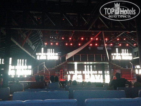 Такого театра для анимации мы не видели до этого нигде. Огромное кондиционируемое помещение, мягкие кресла с столиками, бар в фойе. Настоящий театр. Сами шоу очень красочные, костюмы потрясающие, а ребята просто зажигалки.