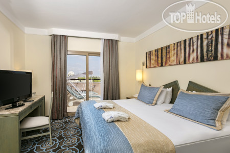 Отдыхали в мае 2025г. Двое детей 6 лет и взрослые. Приехали вечером,поэтому заселили нас сразу.Номер обычный,балкон на вьезд в отель(но вид хороший,так как там тоже территори отеля,зеленая,тихая,другой номер выходил на детскую площадку-там было шумно). В крайний день, почему-то ранее не слышали,мешала музыка и нам спать,внизу нас была дискотека(отельная внутренняя дискотека).