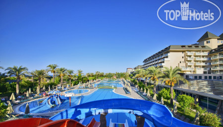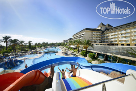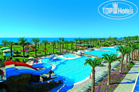 ТЕРРИТОРИЯ - это самое лучшее в отеле, очень зеленая, красивая, чистая, убирают хорошо, стригут траву, моют дорожки. Из растений - много пальм, росли мандарины, лаймы, лимоны, даже грейпфруты , оливки и маслины. Бассейны отличные, горки хорошие, одна не работала, на самой большой понравилось даже моему взрослому 18- летнему сыну. Иногда была дискотека до 2 ночи, но при закрытой двери было в принципе норм. В амфитеатре проводили анимацию своими силами - на любителя.