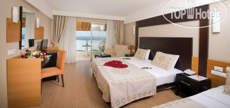 Очередной отпуск в Турции. Ездили в сторону Кемера решили съездит в сторону Алании. Отель посоветовала знакомая. Критерий 1 линия и песок, хамам. Но все было вроде ….. Дорога от аэропорта 2ч 30мин.С учетом то что прилет был 18 00 в отеле были в 22.00. Номер на 3 человек, была одна двухспальная кровать и одна односпальная кровать с видом на соседней отель, и дверью в соседний номер со 100% слышимостью. Номер был вроде убран, но валялись какие-то зеленые фрукты и за тумбочкой печенье от предыдущих постояльцев. Вроде полотенца есть но на 3 только 2. 3 принесли на 3 день. Вроде фен работал сгорел чинили 2 дня. Вроде сантехника рабочая, но вся зеленая. Питание не скажу отличное но хорошее. Много различного мяса- баранина, говядина, курица индейка, рыба, особенно вкусная была баранина в турецкие дни. Много зелени, сыров (не все правда вкусные но скорее всего что то местное специфическое), овощей, салатов. Завтраки яйца 3 -4 видов вареные, глазунья, рулеты, омлет. С кашами беда вроде есть, рисовая но что то не то даже после добавления меда или варенья. Очереди были, если прям по расписанию через 30 минут все рассасывались и можно спокойно подойти. Вроде бы все хорошо но беда была с тарелками ( прям грязные были) и приборами, приходилось искать и требовать. Второй открытый бар со снеками получше и на свежем воздухе под вентиляторами. Выпечка сладкая никакая, кроме пахлавы. Фрукты -яблоки, слива, виноград, бананы. Арбузы и дыни вроде были, но вообще не сладкие, хотя уже разгар сезона. Мороженное тоже вроде было, но блин ну никакущее, 2 видов шоколадное и белое то-ли ванильное то ли сливочное. Бар в холле еще более менее но возле бассейна всегда очередь. Напитки ниже среднего , даже с учетом то что местные. Вытащили у персонала кое-как меню по коктейлям, наливают все с одной тары .Систему заказа и приготовления коктейлей так и осталась загадкой. Пробовал брать чистые напитки джин, виски, водка, текила - 1 бала из 5. Надо было брать с собой свое. Море. До него близко, на пляже песок. Вроде было, но все 12 дней волны 1-1,5 м., грязное мутное. Иногда более менее чистое, иногда в чуть ли не в мазуте. Вход/выход в море песок-камни-песок, с учетом волн так себе. Выход на пляж вечером закрывают где то после 22.00 и утром после 6.00 открывают. Так что ни вечерних закатов и ранних рассветов под шум волн нет , если хочешь обходи отель. Сам пляж не очень чистый. Ни разу не видел что бы чистили песок. Т. к. моря фактически не было, бассейн был перегружен. Лежаки занимали в 6 утра ) в 7 очень сложно найти места. Спа. Вроде есть, сауна, вроде бесплатная, но всего 2 часа в день с 12 до 14. Время обеда. Или на обед или в сауну. Отдыхающие. В основном иностранцы Польша, Прибалтика, Дания Англия, турки, русских немного.