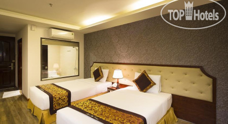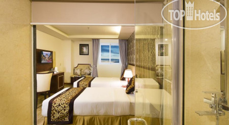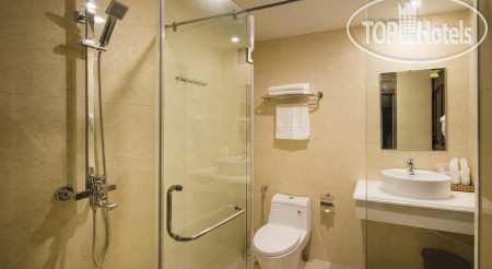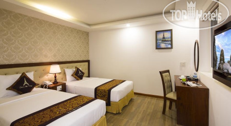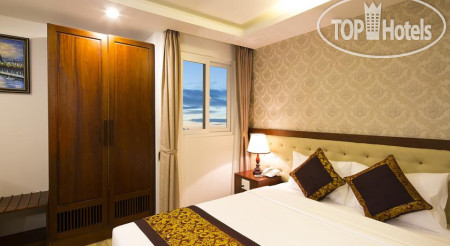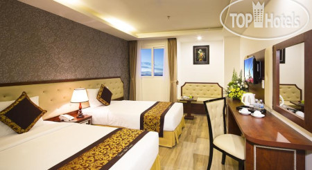 Во Вьетнаме мы с сыном (15 лет) были в первый раз и впервые нам не повезло с номером. Точнее с видом из него. У нас был оплачен superior с видом на город, но сотрудники отеля по своей инициативе заменили на делюкс с видом на стену соседнего здания. Поменять номер отказались даже за деньги, а отельный гид Айгуль (Coral travel) решать вопрос не стала. На самом деле сам номер был хорошим, просторным и с необходимым количеством мебели, поэтому мы решили не думать о плохом виде из окна и наслаждаться отдыхом. Нас привезли в отель около 10:00 утра - конечно же сразу не заселили, сказали ждать и номер дали в 13 часов. Большой минус номера - это негде сушить одежду - мы вешали на стул, а стул ставили между кроватей - напротив кондиционера, или подвешивали за окно на плечиках, или плечики крепили под потолок - чтобы кондиционером обдувало - в общем выкручивались как могли. В номере ежедневно пополняли воду, чайный набор и мыльные принадлежности пополняли при условии их использования/отсутствия. Интернет работал прекрасно без сбоев. Месторасположение отеля замечательное рядом есть все и по хорошим ценам, но чем ближе к центру цена естественно чуть выше: фрукты, смузи (25-35 тыс), мороженное (30-35 тыс), стрит фуд, массажные салоны, обмен валюты, ооочень много вкусных кафешек и даже банкомат VRB Банк. Завтраки хорошие - голодными не будете точно, но без изысков (соответствуют звёздности отеля). Например наши друзья отдыхали в отеле Edele им приходилось завтракать в кафешках, так как есть было либо нечего, либо не возможно. Бассейн на 17 этаже вполне себе хороший, нам понравился и сам бассейн и вид, который из него открывается. В целом отель рекомендую, но сама в следующий раз выберу другой, так как люблю отдыхать с красивым видом - для меня это важно. На пляже за 100 тыс. донгов можно арендовать лежак, если вам нужно, то полотенце тоже дадут. Массаж - везде цена разная и делают по разному, по цене примерно массаж ног 120 тыс. донгов, массаж тела 180-250 тыс. донгов. На улице и на той стороне, где расположен отель есть два кафе (Океан, второе название не помню) - очень рекомендую вкусно и цена адекватная. Билеты на Винперл покупали на улице - дешевле на 30 000 донгов, чем если покупать в кассе и в очереди в кассе не стоять - Винперл обязательно к посещению! Ездили сами на такси на пляж Зок Лет - все что запомнилось это белый песочек и ни одного магазина, а в кафе все стоит раза в 3 дороже - возможно нам не повезло с местом куда нас привезли. Ходили в бассейн Блю Скай на 40-м этаже отеля Панорама (овальное здание напротив башни Лотос) - вход 200 тыс. донгов с человека. Красивый вид, выдают полотенце, есть лежаки и два бассейна: один под крышей и с прохладной водой, а второй открытый и теплый, и кафе с дорогущими ценами - сходить разок сменить локацию, сделать красивые фотокарточки и просто полежать в интересном месте - очень даже. Такси пользовались через приложение Максим - днем 2 минуты и заказ принят, в вечернее время - приходилось ждать, пару раз было, что не дожидались и шли пешком. Сами ездили в I-Resort на такси - обратно на выходе предлагают своих таксистов по завышенным ценам - я показала стоимость в приложении Максим и нас отвезли по цене приложения. В I-Resort лечебные грязевые, травяные и минеральные ванны, есть не большой аквапарк (шатлл до аквапарка отвозит и привозит) и там же кафе, где можно пообедать (обед входит в ст