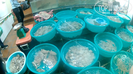 Перед входом справа массажный салончик с забавными девочками, слева - кафе тоже милейшей девочкой. Мы как то на рынке купили непонятно кого))) на вид, вроде, креветки, но это неточно). Потом не знали что с ними делать. Отдали этой девочке из кафе, она за 100 000 как то их шикарно приготовила, еще и овощем мне накидала). Отличный лайфхак, пользуйтесь).
