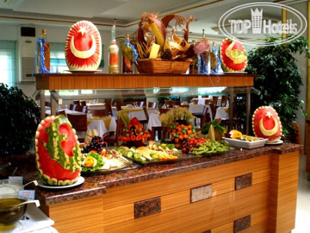 Питание: очень хорошее: курица, рыба, говядина каждый день. На обед или ужин салат с креветками и мидиями - разбирают быстро) гарниров хватает, пончики, круассаны все шикарно. Пироженки и турецкие сладости тут вкусные! По фруктам: яблоки, груши, апельсины, грейпфрут, мандарин, виноград, банан. Есть снэк бар: мы там были на обед: фри, бургеры, курица, пицца, гезлеме. На баре у бассейна возле главного ресторана мороженое с 12.00-18.00.