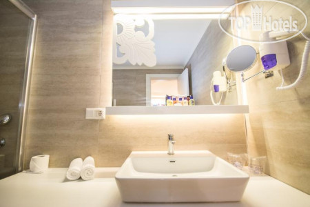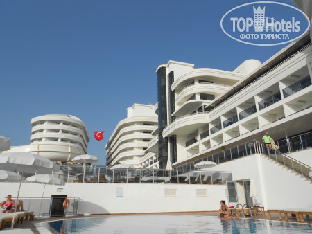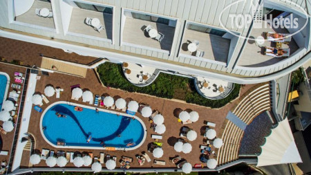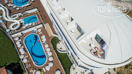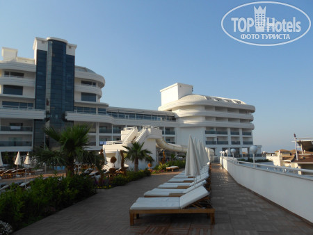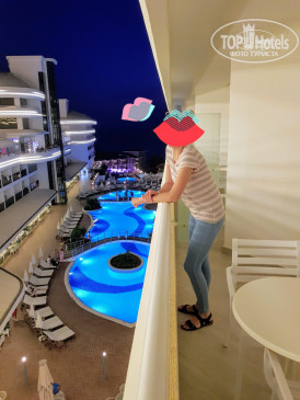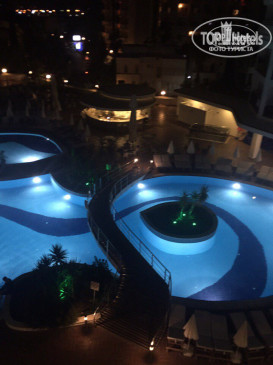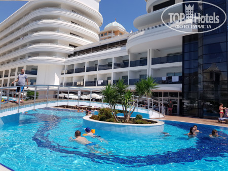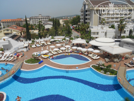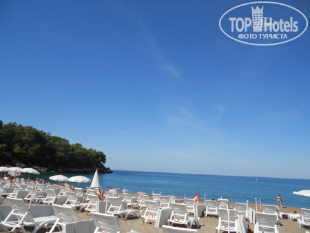 Пляж и бассейны: Собственный песчаный пляж, вход в море мелкая галька с песочком, идеально для купания. Так же , за 20 евро , можно на моторной лодке уехать на остров , поплавать с маской.рядом расположен центр водных развлечений , парасейлинг , банан, гидроцикл , морские прогулки на катере и т.д. Вода чистая. Лежаков хватает.До пляжа ходит шатл , пешком три минуты по крутому спуску. Бассейны чистые, есть отдельный с горками.