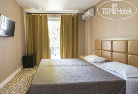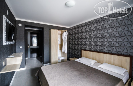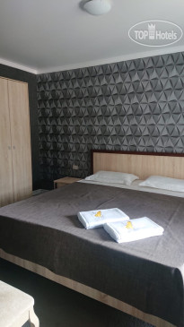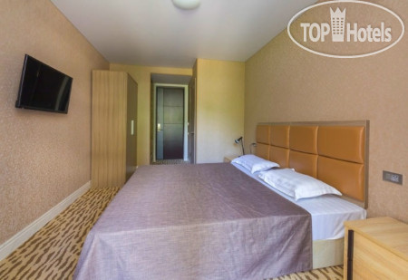 2 корпуса 1 и 2 ,отличие только в бассейне,во 2 корпусе бассейн больше и вроде как с подогревом,но вода холодная! Номера обычные стандарты,наш номер 214 выходил на реку,и это лучший вариант,т.к это не солнечная сторона,горная река прям охлаждает воздух. Номера не первой свежести,вонючий ковролин, на балконе 2 маленьких стула,сушилка для одежды,это прям плюс! 2 раза не было света,один раз до 5 вечера,второй раз с 4 утра и до 9 вечера,в туалете темень,зеркало только там,места очень мало,фен работает,ванные принадлежности дали только в первый день заезда ,1 Гель и 1 пакетик шампуня,это на двух человек,видимо напополам! Кровати не очень,1 кровать 2 раза проваливалась,подушки отвратительные,маленькие и все комками,еще в номере были муравьи!!!! Халаты выдают на ресепшн,халаты хорошие вафельные,полотенца на пляж не предусмотрены!