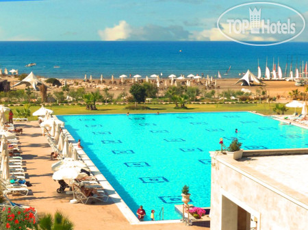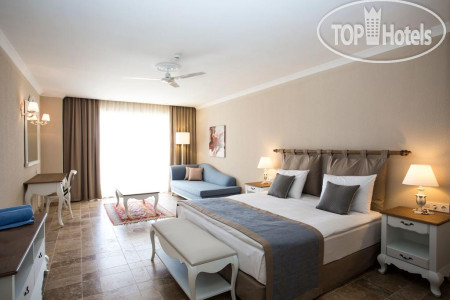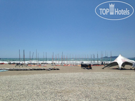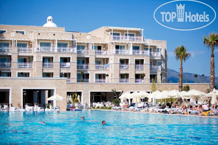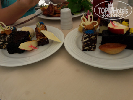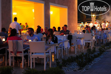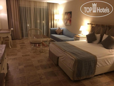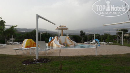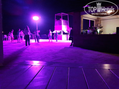 у рецепшена никого. Пришел сотрудник , быстро все заполнили, он дал карточку от номера. (Мы в травелате заказывали номер - superior sea view. ) И ожидали, что вид будет прям на море, наивные). Номер на третьем этаже, просторный, без ванны, с душевой кабиной, с большой кроватью и двумя отдельными односпальными кроватями . Вышли на балкон, ночь, спереди ничего не видно, гора и дорога, смотрим, море где-то далеко, вид боковой, виден кусочек его. Я сразу спустился на рецепшн, попросил , чтоб нам поменяли номер, мне дали понять, что номеров свободных нет и категория нашего номера соответствует заказанному. Я спорить не стал, решил подойти на следующий день. Пошли на ночной суп, ресторан показался маленьким, супы - на любителя). Вышли к бару , смотрим, лежат собаки, кошки ходят, первое впечатление ну так себе, хотя я про это знал. Скажу наперед, все животные дружелюбные, никаких лаяний, рычаний не было, мы в итоге подходили потом и гладили всех. На следующий день сотрудник поменялся, я попросил заменить номер, он сказал, что через пару дней освободится похожий номер , но он будет тоже с боковым видом на море. Я попросил с видом на бассейн и море, на что он сказал , что за такой номер нужно будет доплатить примерно 10евро в сутки. И попросил подойти через пару/тройку дней. Контингент - в первые дни пребывания были в основном поляки и турки, а русских было очень мало, сначала даже обрадовался, но через пару дней уже хотелось услышать русскую речь. Жаль только , что так и не сходили в сауну/хаммам в первые дни. Они, кстати, бесплатные. Тренажёрка толком не охлаждается. В итоге, через трое суток нам показали огромный номер на последнем четвертом этаже, с видом на бассейн и море, просто люксовый, с двумя большими балконами, кухней, большая джакузи на балконе под открытым небом, два шезлонга. Оплатил в итоге 60долларов за 6ночей. Не пожалели, номер действительно оказался суперский. Единственный минус был, что кондей тяжело справлялся с такими площадями и , когда оставляешь кондей на полдня, не было прям холодно. И с каждым последующим днём в отеле ощущались только плюсы. Уборка в норме, делали фигурки из полотенец, душевые принадлежности - диспенсер мыла и все (никаких отдельных тюбиков одноразовых не было). Тапочки есть. Воду каждый день приносили в бутылках 0,5 на человека. От комаров ничего не потребовалось, их практически нет, не кусали. На территории стоят холодильники с водой , там стаканчики как йогурты только с водой, первый раз такие вижу. Подходишь сам , берешь сколько нужно. Горки, бассейн - супер. Отмечу нюанс - на горках плоховато следят за очередностью, в первый день меня это поднапрягло. На радужной горке иногда катятся сразу по двое и бывает, неудачно влетают друг в друга. В бассейн разрешают всем прыгать , но это даже плюс для нас(дети научились нырять рыбкой), а глубина в основном бассейне 1.40м. Есть отдельно бассейн для маленьких с горками. Не мешало бы повесить табло с градусами температуры воды/воздуха у бассейна, было бы очень удобно. Полотенца на шезлонгах оставляли некоторые туристы на ночь. Я рано утром выходил на пробежку вдоль пляжа и заодно занимал шезлонги. Как-то раз наше полотенце пропало, но без проблем, без разбирательств нам выдали новое. Море шикарное, не холодное, камней нет, аквашузы не потребуются, плавный вход, потом постепенно глубина. Живности нет, рыбки 