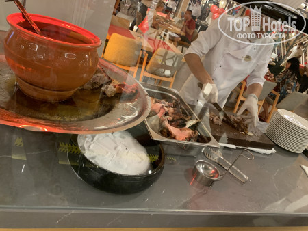 Еда, хорошо, все вкусно, изысков нет! Один раз в неделю рыбный день, там все! А так рыба, мясо, разного, на гриле, целиком, тушеного, жареного, достаточно. Фрукты, свежевыжатый апельсиновый сок, каждое утро. Но еда, стандартная, для хорошей 5-ки, но не Ультро включено!!! Отель, очень дорогой, и за, что Я заплатила, не понятно.