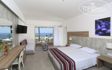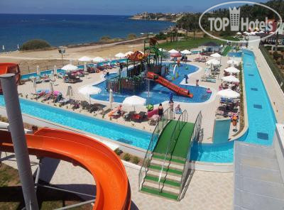 Отличный семейный отель. Для детей шикарная зона с бассейном, детская площадка, ленивая речка, шикарный аквапарк! Номера хорошие, все работала, чистые. Питание достаточно скромное, но еды хватало, голодными не оставались. Из минусов: это отсутствие анимации, от слова совсем, вечером было очень скучно, как взрослым, так и детям, но это скорее всего было из-за того, что начало сезона. Пляжа у отеля нормального нет, одни булыжники и камни. Зато примерно в 1 км от отеля шикарный пляж Корал Бей, ходили туда) В принципе, отдыхом довольны, все устроило!