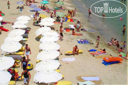 Пляж муниципальный, хотя на сайте заявлен как частный, огороженный. Зонты и коврики для отдыха привезли из дома. Напротив отеля между зонтами и лежаками от Корали мы решили расположиться, и с нас потребовали деньги за занятый нами островок песчаного пляжа. Пришлось ретироваться поближе к водным транспортным средствам.
