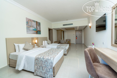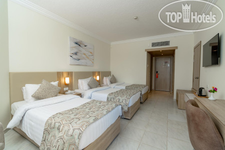 В этом отеле второй раз, и мнение об отеле не изменилось. Поедем еще раз, обязательно! Большинство отзывов об этом отеле будут хорошие, и это так и есть. Удивил отзыв туристов, которые были с нами в одно и то же время, но при этом непонятно откуда взяли, что отношение к русским, вдруг стало плохим. Сразу скажу. Нет такого. Все отлично. Где увидели туристы дискриминацию, я так и не поняла. По порядку. В отель прибыли в районе 10 утра, и долго номер не ждали. Как нам и обещали дали сюит без доплаты. С прекрасным видом на море (оговорюсь, заранее списалась с отелем, сказав, что забронировали стандарт с видом на море. Но хотелось бы номер с ремонтом. Спросила, сколько нам надо будет доплатить, на что любезно ответили, что если номер сюит (это номера с ремонтом) будет в наличии, то доплачивать не надо. Дадут так, потому что мы не первый раз будем гостить в этом отеле.) Номер в корпусе С, третий этаж. Просторный. Всё устроило. Убирался всегда один и тот же мальчик, мы ему всегда оставляли 1-2 доллара или евро. Нам не жалко. Это копейки. А он умничка, старался. Всегда улыбаемся друг другу, прощались, даже обнялись, пожелав ему всего хорошего. Относитесь к работникам с улыбкой и добротой и будем вам в ответ, такое же отношение! Номер 357, кстати. Свежий ремонт, конечно не идеальный, но ничего критичного. Если вы конечно не приехали капризничать и придираться. Минус я бы назвала один, очень шумный кондиционер и его совершенно невозможно отрегулировать на меньший режим. Мы в итоге, его просто перед сном выключали и открывали балконную дверь. Так и спали со свежим воздухом. Комарики пару раз были, фумигатор в помощь. Территория отеля чистая, ухоженная, небольшая. Но по жаре особенно и не погуляешь... Наоборот хорошо, от моря быстренько в номер, душ и на обед-ужин. Всё рядом. Завтракали в ресторане на третьем этаже. Персонал там идеальный!!! Воспитанный. Вежливый. Доброжелательный. Все умнички! А вот в ресторане рядом с ресепшн, те кто убирает, за столами, позволяет себе лишнего, обсуждая туристов, или они думают, что мы не понимаем, что они говорят?? Не стала жаловаться Ирине, ибо приехала за положительными эмоциями, да и зацикливаться на этом не стоило того. Но неприятно было. Именно после этого мы и перестали ходить на завтраки в этот ресторан. Что впрочем оказалось только плюсом. Питание в отеле достаточное. Нам всего хватало. Море у отеля, отдельная тема для разговора, одно скажу, все отлично, заход, глубина, чистота, наличие лежаков, замена полотенец. Все на "5". Пару дней море было с волнами, но купаться можно было. Остальные дни, без волн, полный релакс! Развлекаловки разные были, у пляжа, у бассейна. Не надоедливые. Кто хотел, участвовал. Ресепшн - прекрасное отношение. И на момент заезда и на момент выезда. Выезд у нас был в 15 ч. Номер продлевать не стали, особой нужды не было, прекрасно понимали что отель заполнен и в наш номер уже въезжают следующие гости. Поэтому закатывать истерики на ресепшн требуя продлить номер, нам бы и в голову не пришло. (Читала отзыв, что кто то возмущался, что им номер отказались продлевать). Обед мы на ресепшн оплатили, цена разумная, и соответственно продлили и браслеты до выезда. Никаких проблем с этим нет. Так что, туристы, которые возмущаются, что их лишили браслета и вообще заселили изначально в номер без вида, стесняюсь спросить, вы бесплатно хотели по