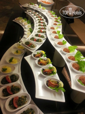 Ресторан - все в порядке. Маловато морепродуктов, но рыба, мясо, овощи-фрукты, выпечка-сладкий стол - на уровне. Отличный менеджер в ресторане, всегда решит проблемы и поможет. Спасибо.