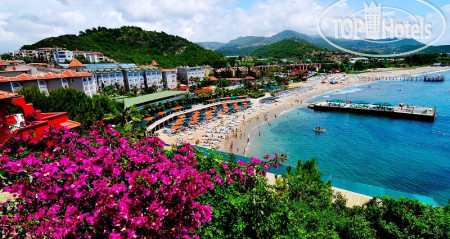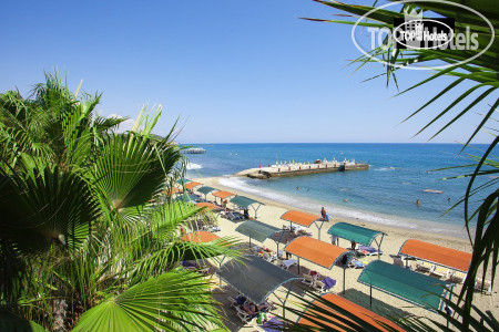Территория: Вот где отель раскрывается по-настоящему! Зеленые газоны, ухоженные пальмы, цветущие кустарники – всё дышит спокойствием и уютом. Отель расположен на первой линии, поэтому до моря рукой подать. Собственный песчаный пляж оборудован всем необходимым: лежаками, зонтиками, душевыми. Песок приятный, вход в море пологий, что очень удобно для отдыхающих с детьми. Есть пирс, с которого можно насладиться видами и искупаться.