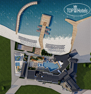В отеле все неплохо, кроме того, что все службы сосредоточены на крохотном пятачке. Территории нет вообще. Ну вообще нет. Пляж узкий, на входе в воду камни. Пирс - супер, широкий, полно лежаков, бар, столики, платформы для ныряния, круглые мягкие диваны.