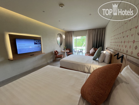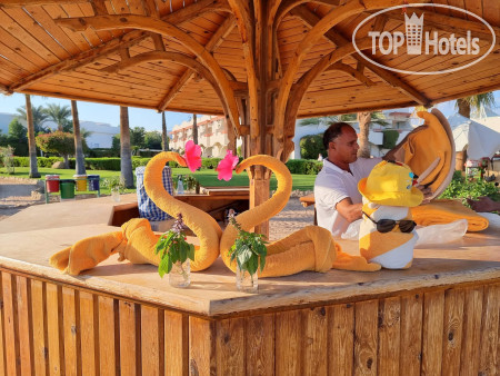 Отдыхаем в этом отеле постоянно: в марте в течение 7-8 ночей, осенью - 12-13, и менять его желания не возникает. Нам все здесь нравится от удобств до сотрудников. Отличное разнообразное питание, близкое к домашнему, и очень вкусное!, особенности: нет привычных нам каш на завтрак, на обед из первых блюд всегда два традиционных супа, наличие местных фруктов, кроме прочих (финики, гуава, физалис - он же овощ), мясные блюда и выпечка - просто шедевральные; алкоголь приносят по заказу и одновременно только по 1 стакану на человека), есть ночной суп, но нам понадобился один раз после позднего возвращения из города, на пляже отлично организованный снэк-бар. Фишка отеля или Египта в целом (?) - это выдача и обмен пляжных полотенец прямо на берегу, но не чаще 1 раза в день на персону. Очень нравится анимация в воде и на берегу - она активная, веселая и не оставляет равнодушных. В номерах делюкс (суперион) есть все для здорового отдыха: отличные спальные места, смарт - телевизор, чайный столик, уютное освещение, светоизоляция, ванная комната со всеми удобствами, хорошее кондиционирование. Шумоизоляция от улицы отличная: в соседних корпусах идет обновление фонда, реставрировали бассейны - ничего не слышно при закрытых окнах. Уборка регулярная со сменой белья вполне качественная, но мы не сорим в номере, ходим в тапочках, а пляжный песок и морскую соль смываем под душем на берегу. Но главное в этом отеле - добродушие и отзывчивость персонала, постоянная видимая и незаметная работа по улучшению отеля и отдыха гостей, когда ездишь регулярно - это заметно. Кстати, когда не попадаем в сроки заселения- выселения, то нам всегда идут навстречу: принимают на хранение наши вещи (браслеты не снимая), и мы тусуемся на море, которое в 30-ти шагах. Оно в спокойной бухте - бесподобное, прозрачное, чистое, с красивыми рыбками, с ровным заходом с берега по песчаному дну, под неусыпным наблюдением спасателя. Через несколько дней с нетерпением ждем новой встречи в 4-раз! С собой берем фумигатор, защиту от солнца +50 и отличное настроение. А минусы конечно есть, но если объективно не анализировать причины.