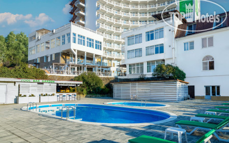 Номера маленькие, но все есть, чайник, фен, пляж.полотенца, сушилка, большой балкон и т.д- все что нужно для отдыха есть. Бассейн хороший, чистый. Ресторанчик чистый, еда хорошая, можно купить обед или ужин за 800 руб/чел. Рядом автоб. остановка ( ну как рядом-с горы в гору с лесенки на лесенку). Променада нет совсем, ездили на автобусе до центра. Пляж на который возит трансфер мне не понравился, хоть и благоустроенный, но народу море, лежаки 1300руб.