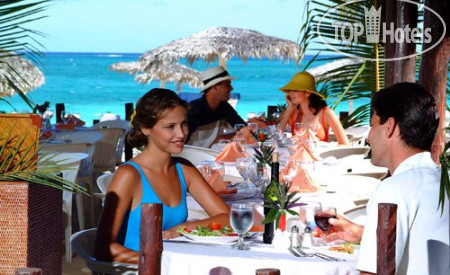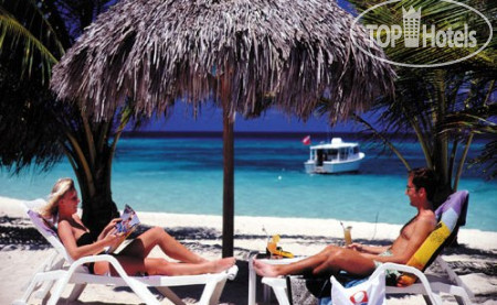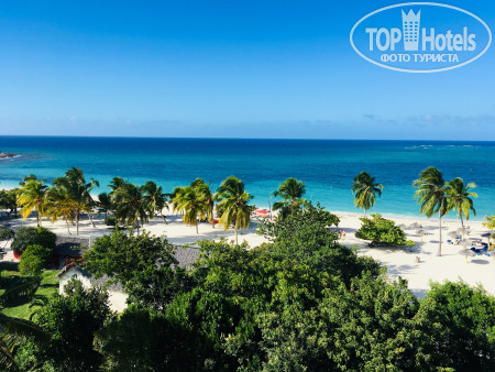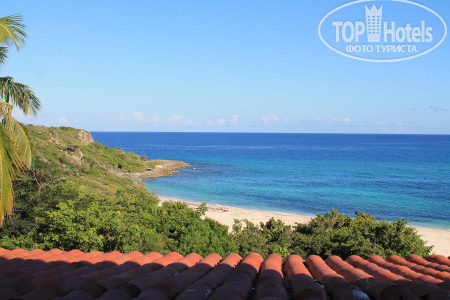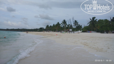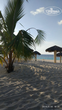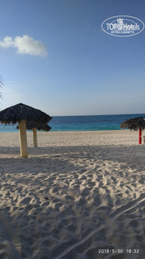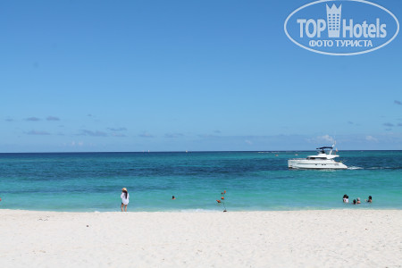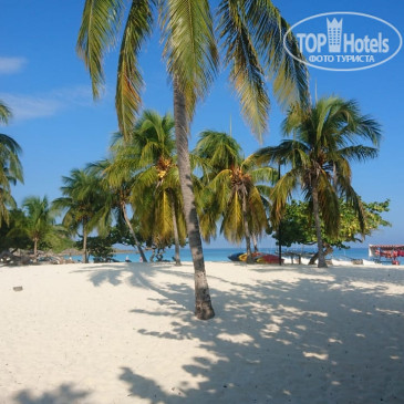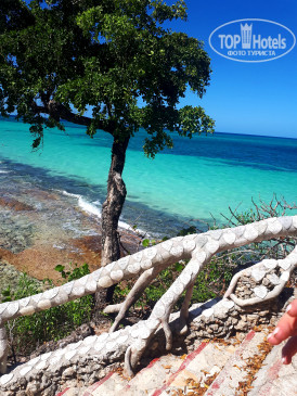 С одной стороны пляж закрывает утёс, на вершине которого находится отель. К концу нашего отпуска мы узнали, от наших новых знакомых канадцев, которые не однократно уже были в этом отеле, что возле этого самого утеса шикарнейший подводный мир с живыми кораллами и множеством рыб, такое количество рыб, что они тебя окружают и даже касаются настолько их там много разноцветных больших и маленьких! Даже немного было жутковато, когда мы там снорклили, похлеще чем в красном море. На берегу брали жилеты, так как плавали долго и далеко. На дне есть звёзды, морские губки раковины.