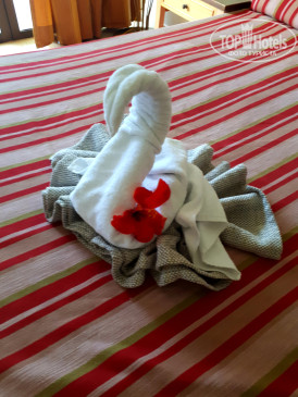 Сначала нам не повезло нас попробовали засунуть в дальний корпус (Луна сайд), от главного ресепшена туда идти далековато, да и номера там уж очень стрёмные (вид на речку вонючку,запах тухляка в номере и какой то ушатанный номер ,мы кстати сказали ,что молодожены и это было указано при броне номера), но не прокатило, устроили шум на ресепшене и номер поменяли на главный корпус с основным бассейном и столовой все рядом.Главное нет речки вонючки !